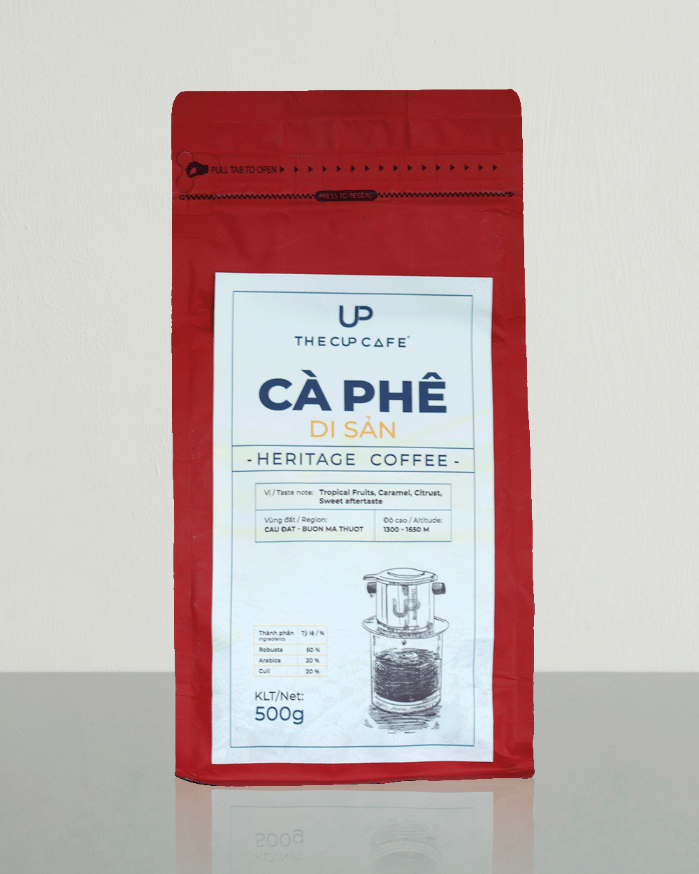 THÔNG TIN SẢN PHẨM Quy cách: 500g Mô tả: Cà phê truyền thống với 100% pure coffe, là sự kết hợp hài hòa giữa Robusta, Arabica và Culi. Xuất xứ từ Cầu Đất, Đà Lạt (Arabica) và Buôn Mê Thuật (Robusta). Hương vị đậm đà truyền thống. HƯỚNG DẪN PHA PHIN Bảo quản: Nơi khô […]
