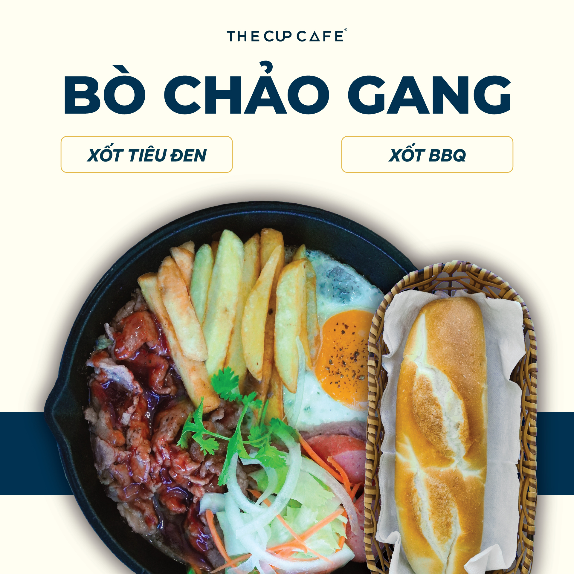 – Bò chảo gang (xốt tiêu/xốt BBQ)