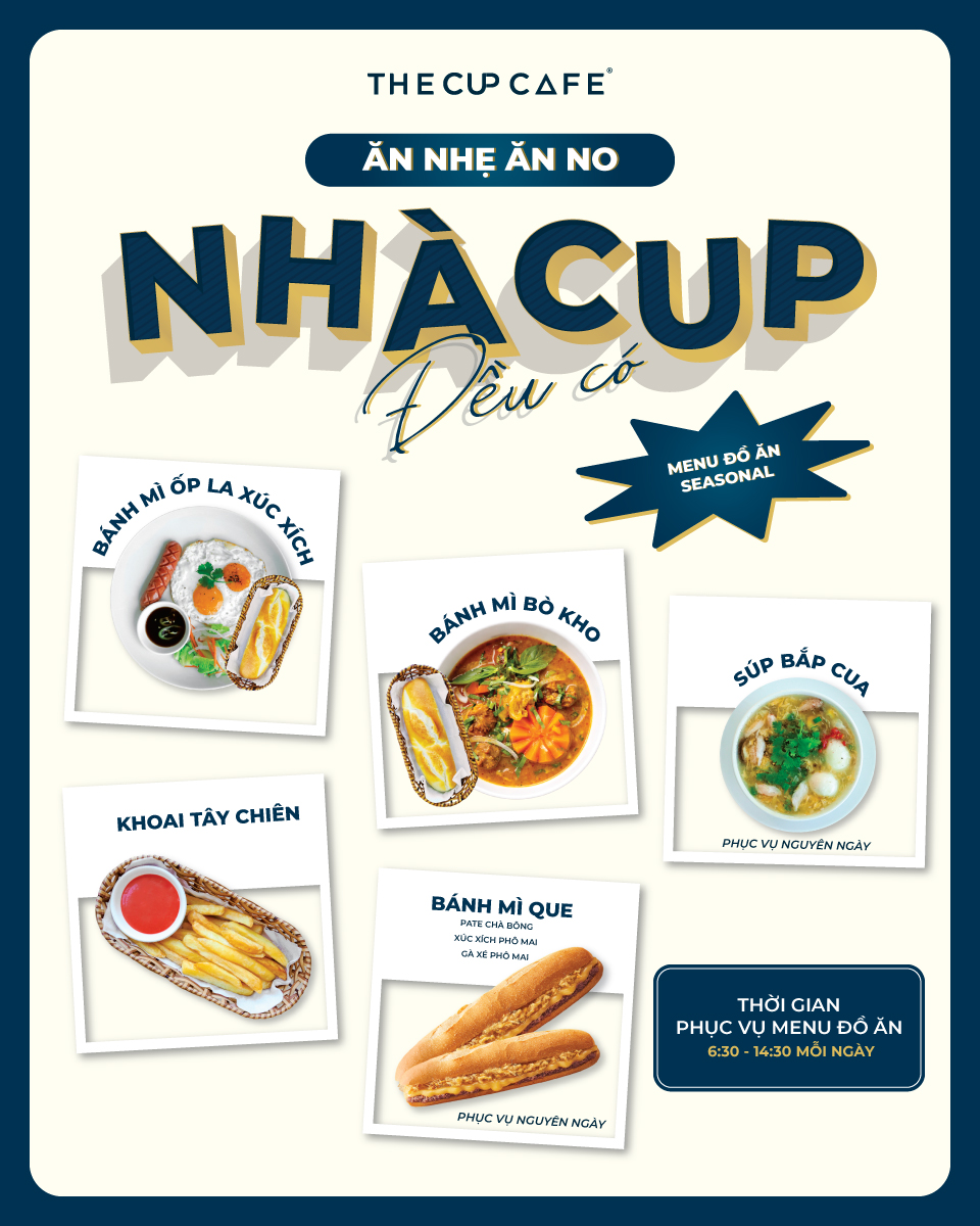 Từ ngày 01.04.2026, The Cup Cafe chính thức cập nhật menu thức uống và món ăn, thêm vài lựa chọn để bạn có thể đổi vị khi cần, mà vẫn giữ cảm giác quen thuộc khi ghé lại.