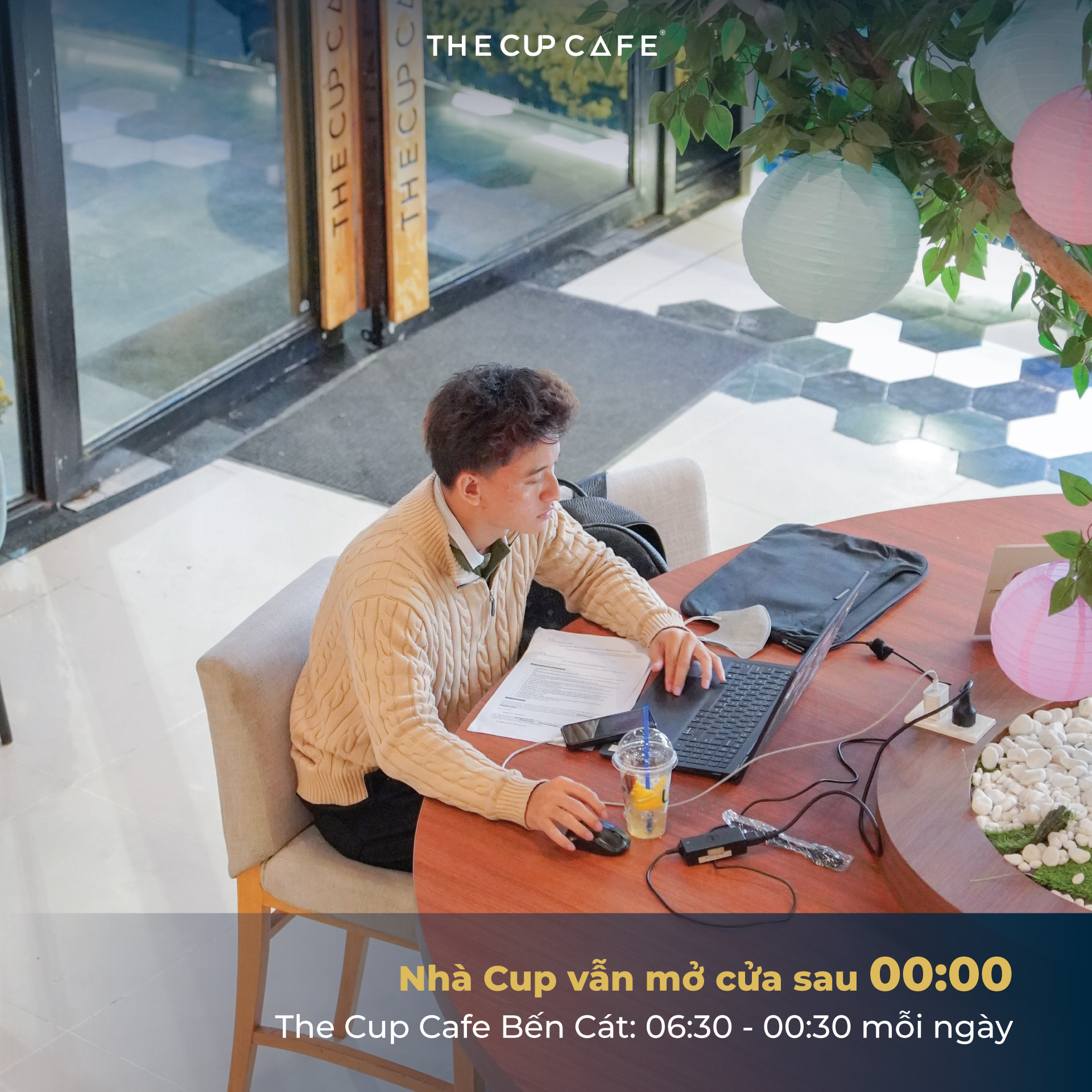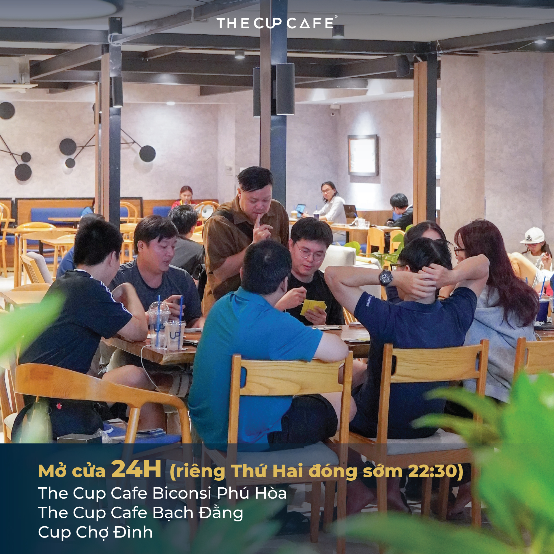Không phải ngẫu nhiên mà một vài chi nhánh của The Cup Cafe mở cửa 24h, bởi tụi mình hiểu có những nhu cầu không nằm trong khung giờ hành chính, mà đến từ nhịp sống thật của những người bận rộn, cần không gian để tạm dừng và hồi sức.